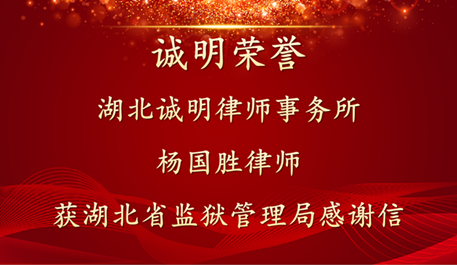 近日,湖北诚明律师事务所收到一封来自湖北省监狱管理局的感谢信,信中对本所杨国胜律师在2025年度参与全省监狱执法监督工作中的积极贡献,给予了高度肯定与诚挚感谢。
